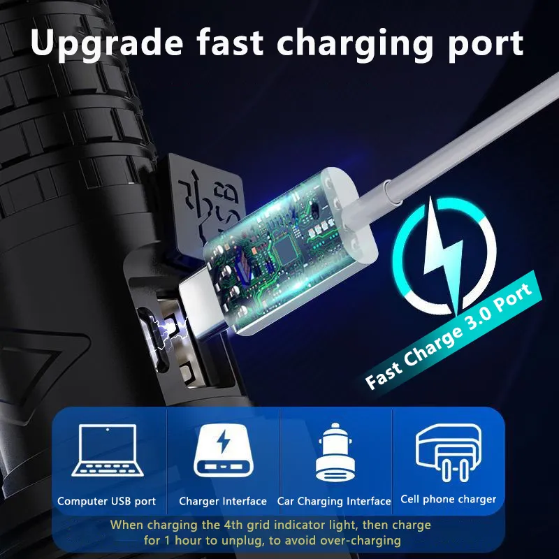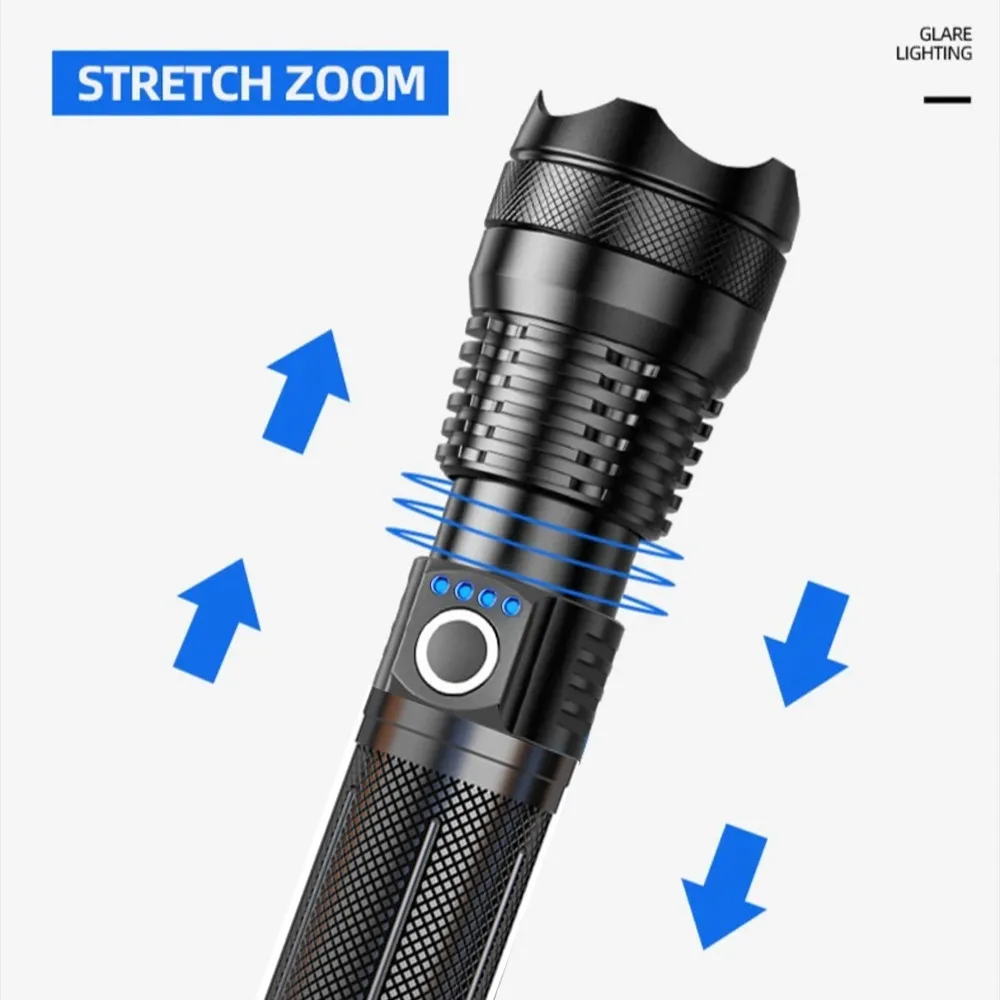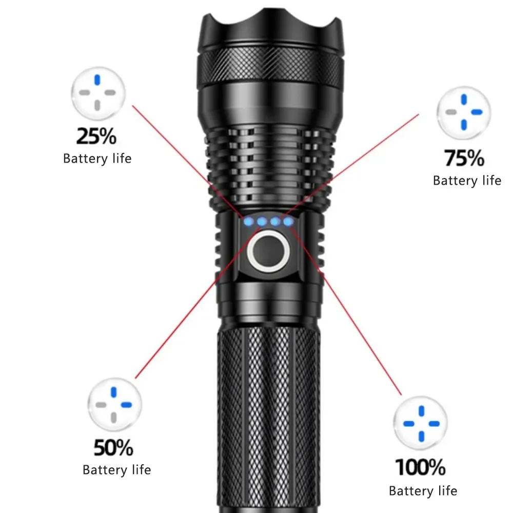 P50 flashlight outdoor zoom power display Tpye-C charging household multifunctional flashlight